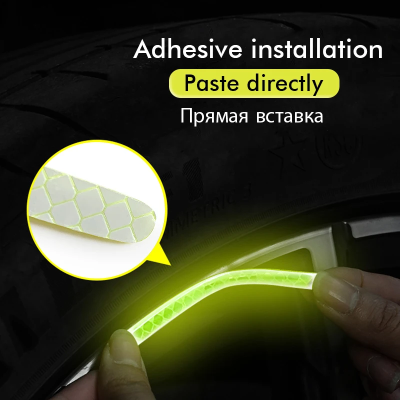 4. Easy installation: reflective stickers were cut into 20 pieces and made into curved pieces, which fit perfectly with round pieces. The sticker has its own adhesive backing, which can be easily torn off, attached directly to the rim of a car, motorcycle or bicycle;?