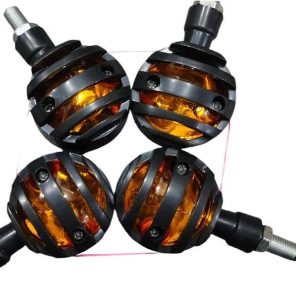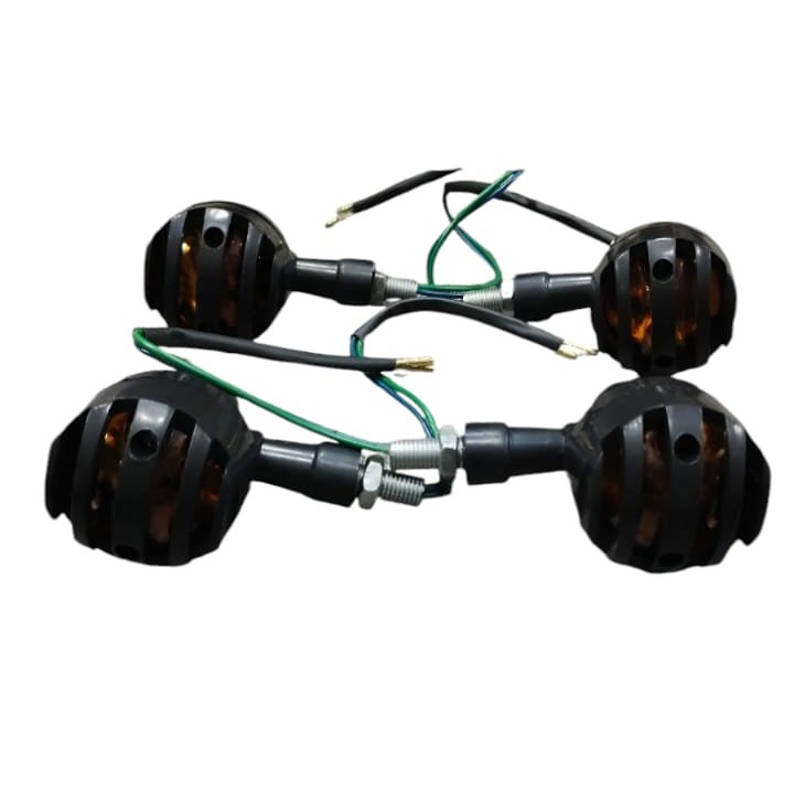 4 pcs 12V Universal Motorcycle Grill Turn Signal Lights ? Amber LED, Chrome Body, Compatible with Honda, Yamaha, Kawasaki, Sportster 1200, and More.