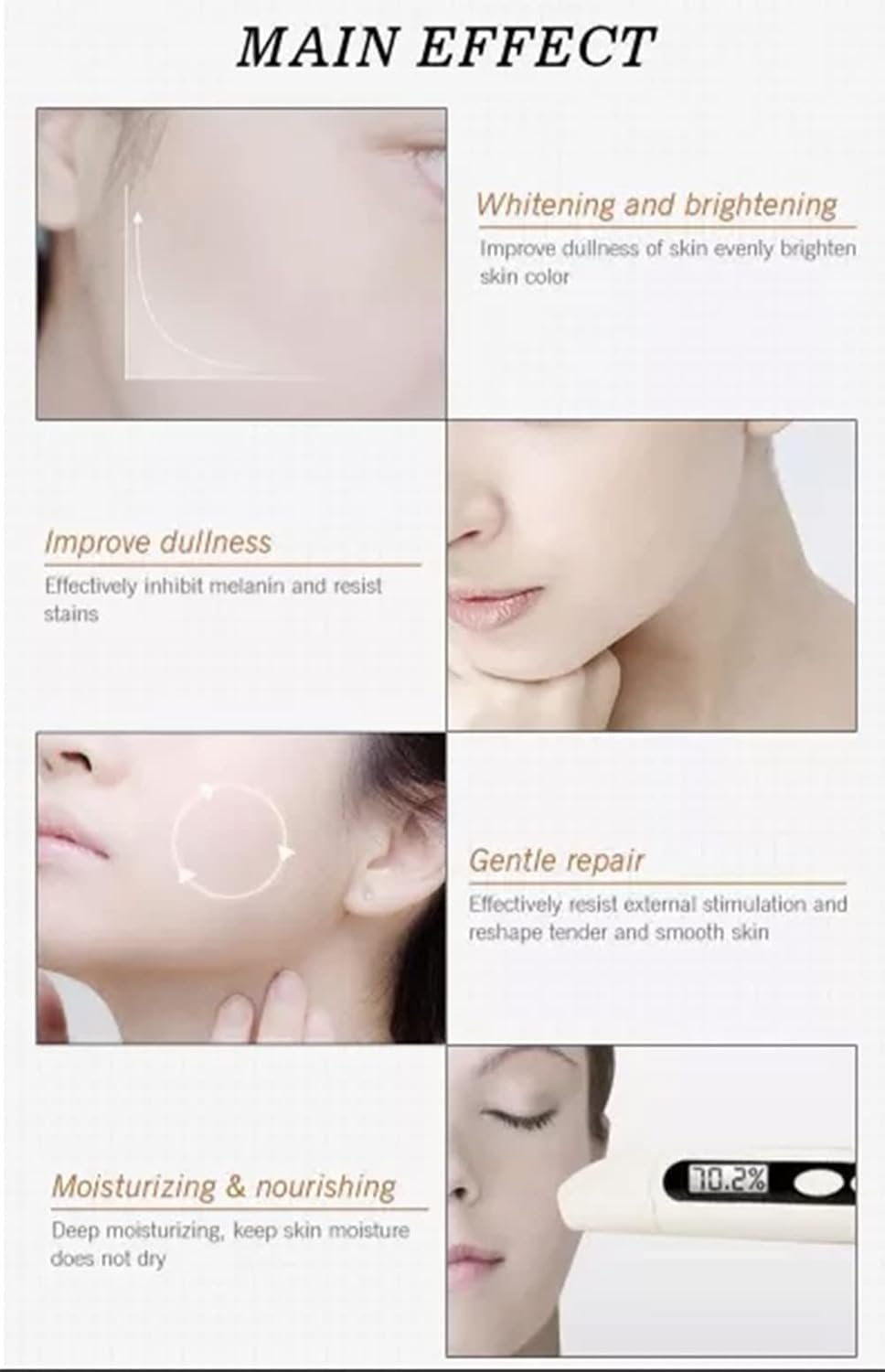 Can smooth out wrinkles rapidly and effectively , prevent melanin production , promote cell regeneration , improve aging skin , minimize pores , effectively protect the integrity of cell tissue and restore a firm , elastic , lustrous , babyish skin .