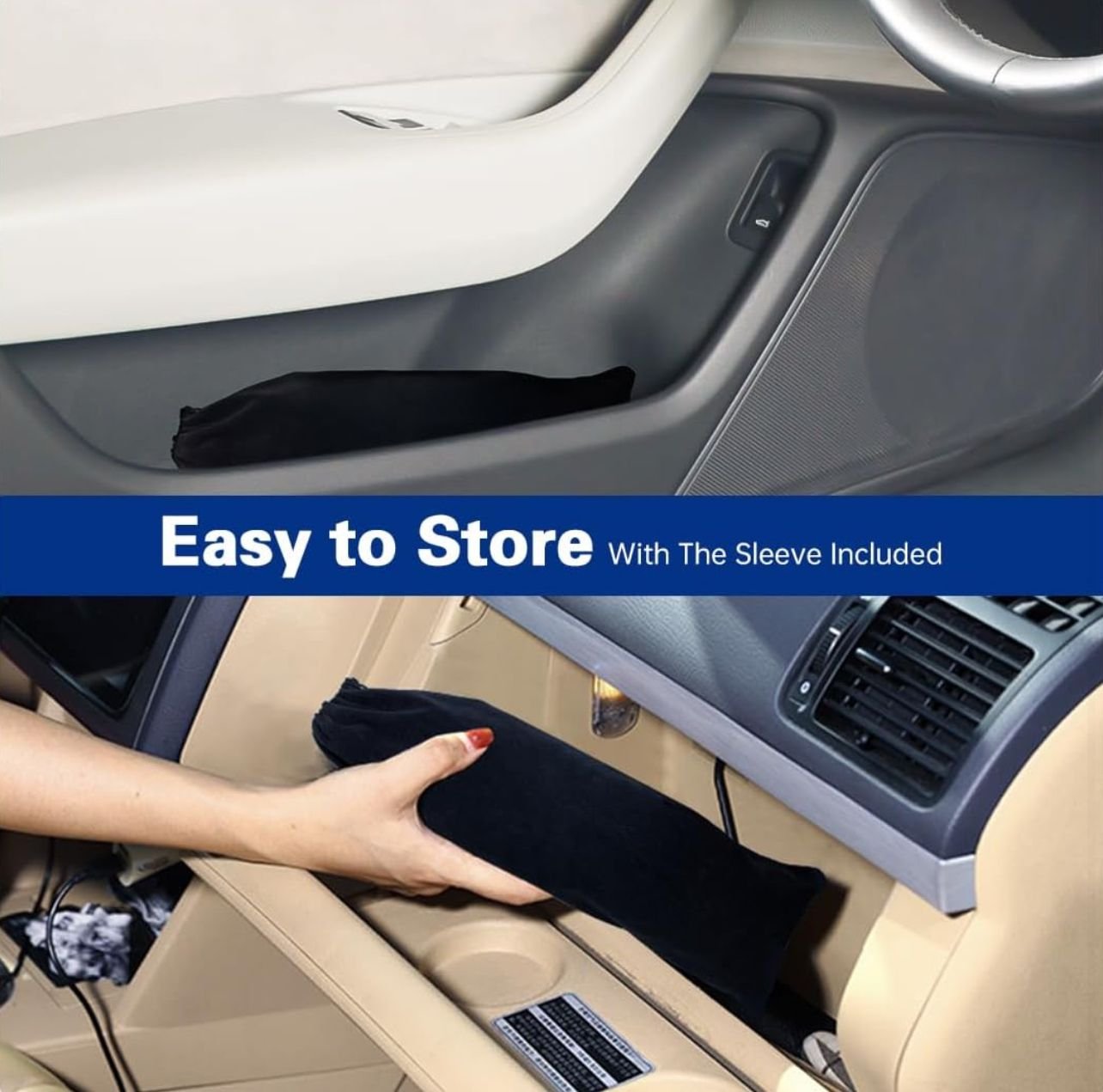 - [Easy to use and store]:The Retractable Windshield Cover works the same way as a regular umbrella, opening and closing it is easy and can be done by one person. After folding, it is the same size as an ordinary umbrella and can be stored in the door or the central control box