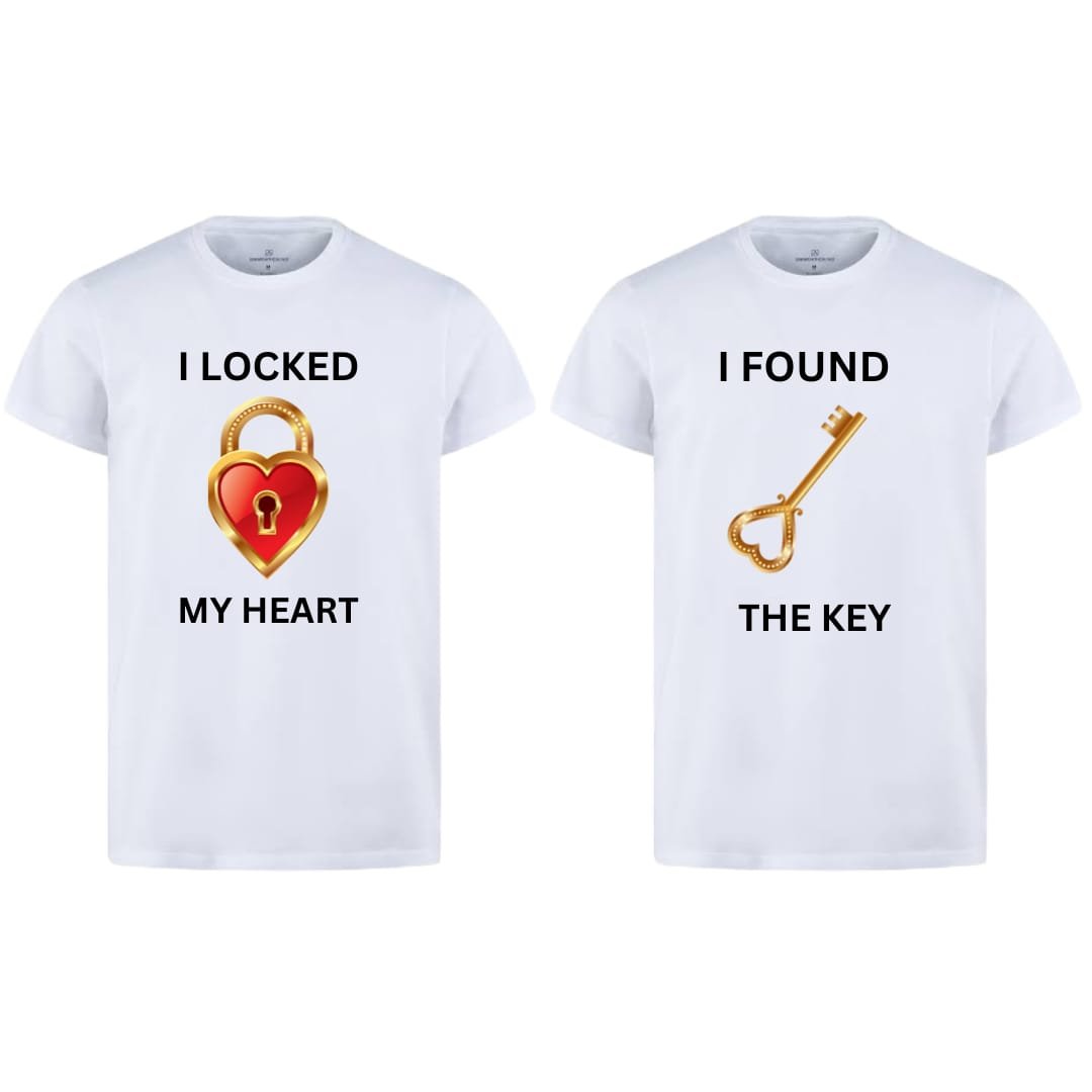 Combo Of My Heart & The Key Style White T-Shirt with Cute Design – Heart & key Design T-Shirts? ? Best Quality T-Shirts For Girls | T-Shirt For Women – T-Shirt For Men