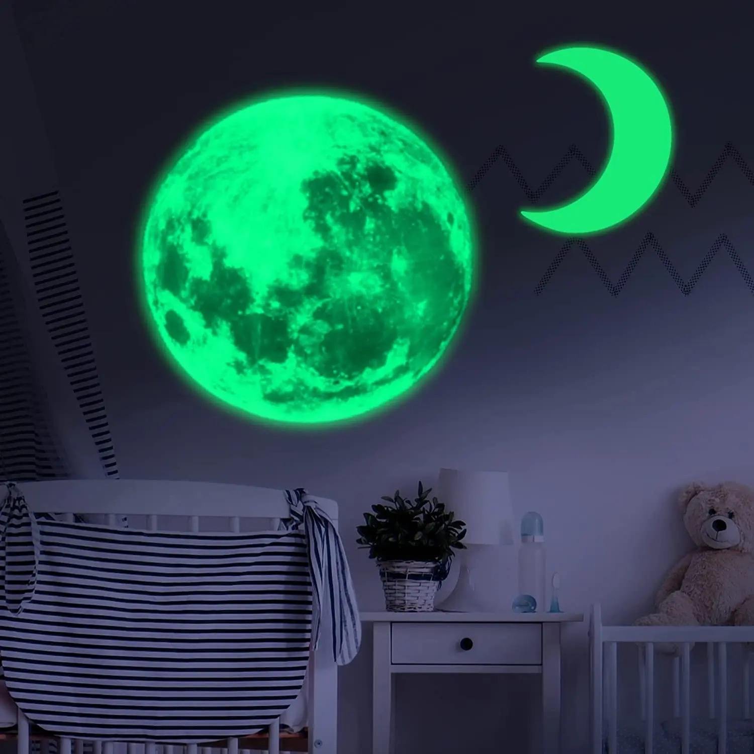 3D Luminous Moon Wall Sticker Fluorescent Glow In The Dark Star Moon Wall Stickers Decals Wallpaper Kids Room Home Decoration