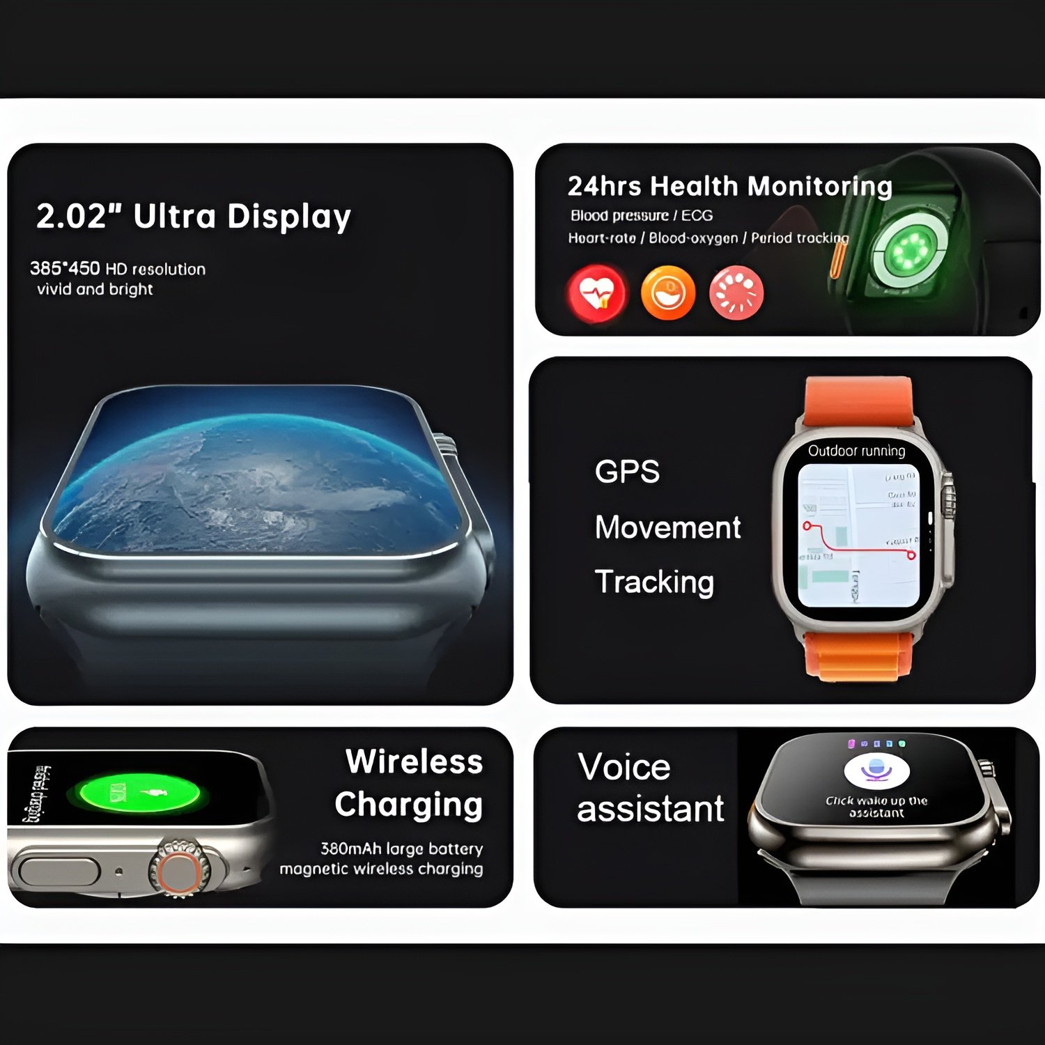 - 2.02 inch ultra-wide full touch color screen, Very very narrow screen bezels,420*480 Resolution