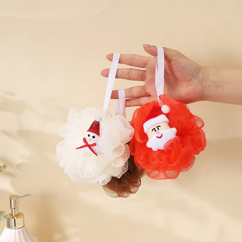 Kids Bath Sponge Ball – Bath Loofah Mesh Pouf Shower Exfoliator Scrubber Bath Foaming Ball Loofah with Soft Toy (random character )