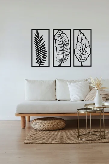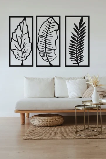 Leafs wall art Room decoration Wall hanging MDF material 16?20 inch covered area Black color