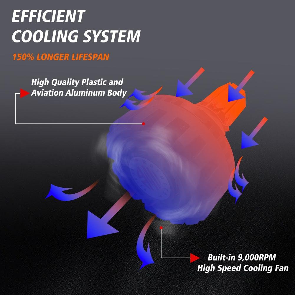 Fan technology for excellent heat dissipation and works in 3 modes – high beam, low beam & Flasher