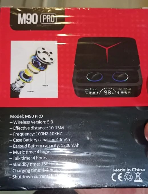 Active Noise-Cancellation: NO Bluetooth Standard: Bluetooth v5.2 Battery Indicator: LED Chipset: Other Codecs: APT-X Communication: Wireless Feature: Sustainable, Perfect Sound Function: Microphone, Power Bank, Waterproof, LED Display Material: ABS Style: In-ear Support Memory Card: No Volume Control: Yes Waterproof Standard: IPX-6 Wireless delay time: 31-40 ms Model Number: M90 Pro Brand Name: Dealbay Place of Origin: Guangdong, China Use: Listen to music Vocalism Principle: Dynamic Private Mold: NO Game atmosphere light: NO Control Button: NO Product name: M90 Pro TWS Wireless Earphone Keyword: Stereo Earbuds Type: In-Ear Headset Color: Black Charging Time: 1-2 Hours BT Version: BT 5.2 Working Time: About 3-4 Hours Working Distance: 10-15 Meters Logo: Logo Customize |