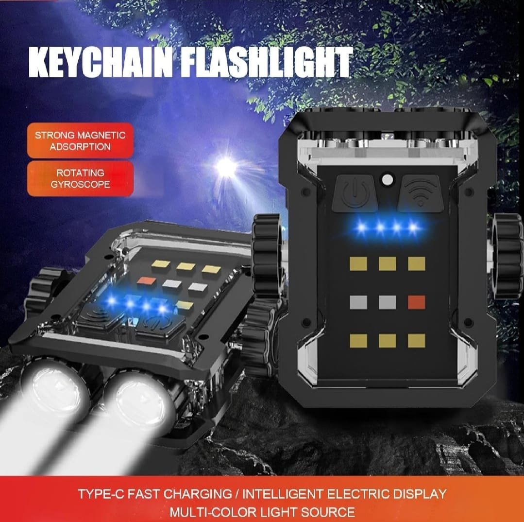 Accident Alert: This keychain work light contains a powerful magnet at the end that ensures firm attachment to any metal surface. It also emits red and blue flashing lights with a warning function in case of an accident.