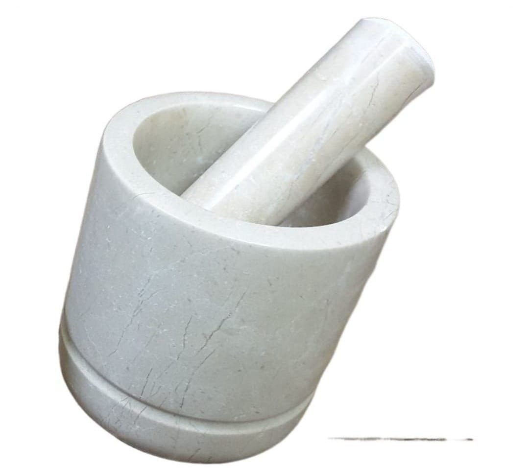 Marble Langri for Grinding Chillies Mixing & Mincing Kithen Lungri Kitchen, Morter and Pestle Set, Bowl Polished Natural Marble Stone, Grinder and Crusher Medicine Hawan dasta