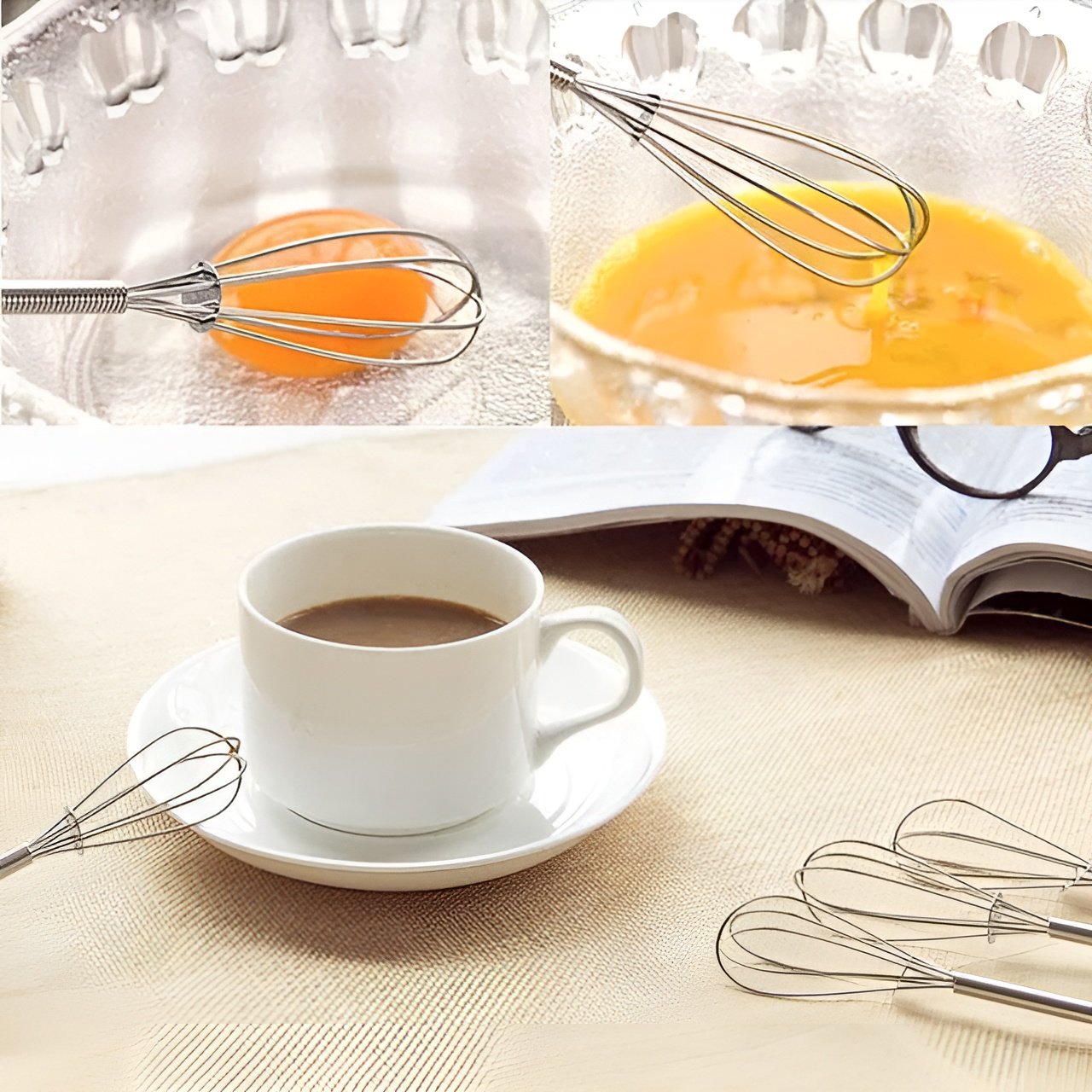 • Effortlessly whisk eggs, milk, and coffee for a creamy and frothy texture.