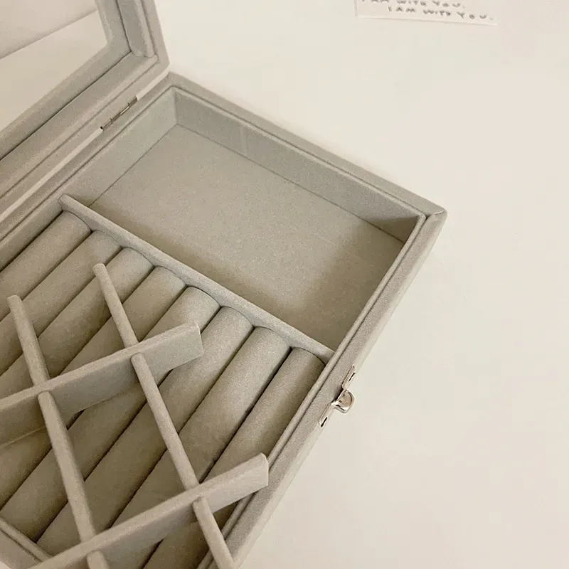 Velvet Carrying Case with Glass Cover Jewelry Ring Display Box Tray Holder Storage Box Organizer Earrings Bracelet Showcase