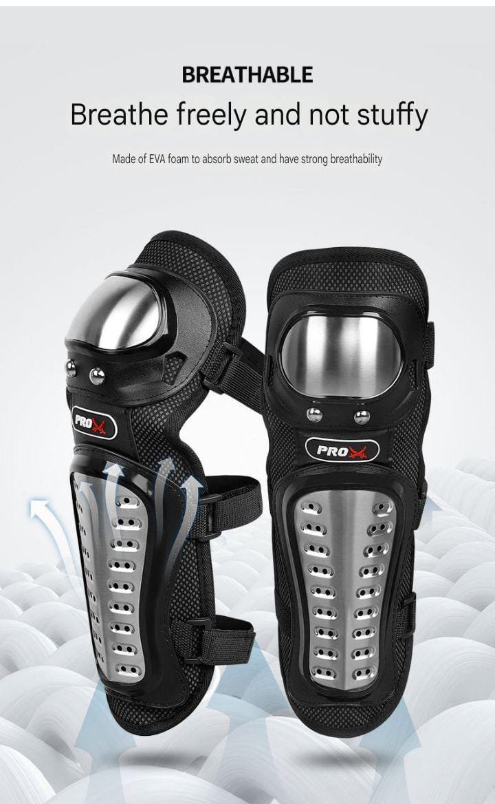 - 360° PROTECTION: FABSPORTS ProX Stainless Steel Knee and Elbow Guards are designed using high impact PE and stainless steel materials to provide a greater degree of comfort and protection for knees and shins. Ideal to prevent the impacts, wind, bump, crash, etc.