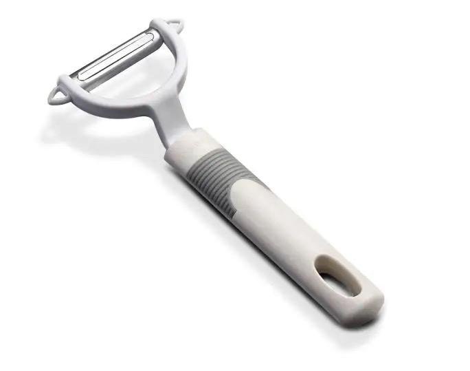The peeler has a sharp stainless steel that can easily peel fruits and vegetables
