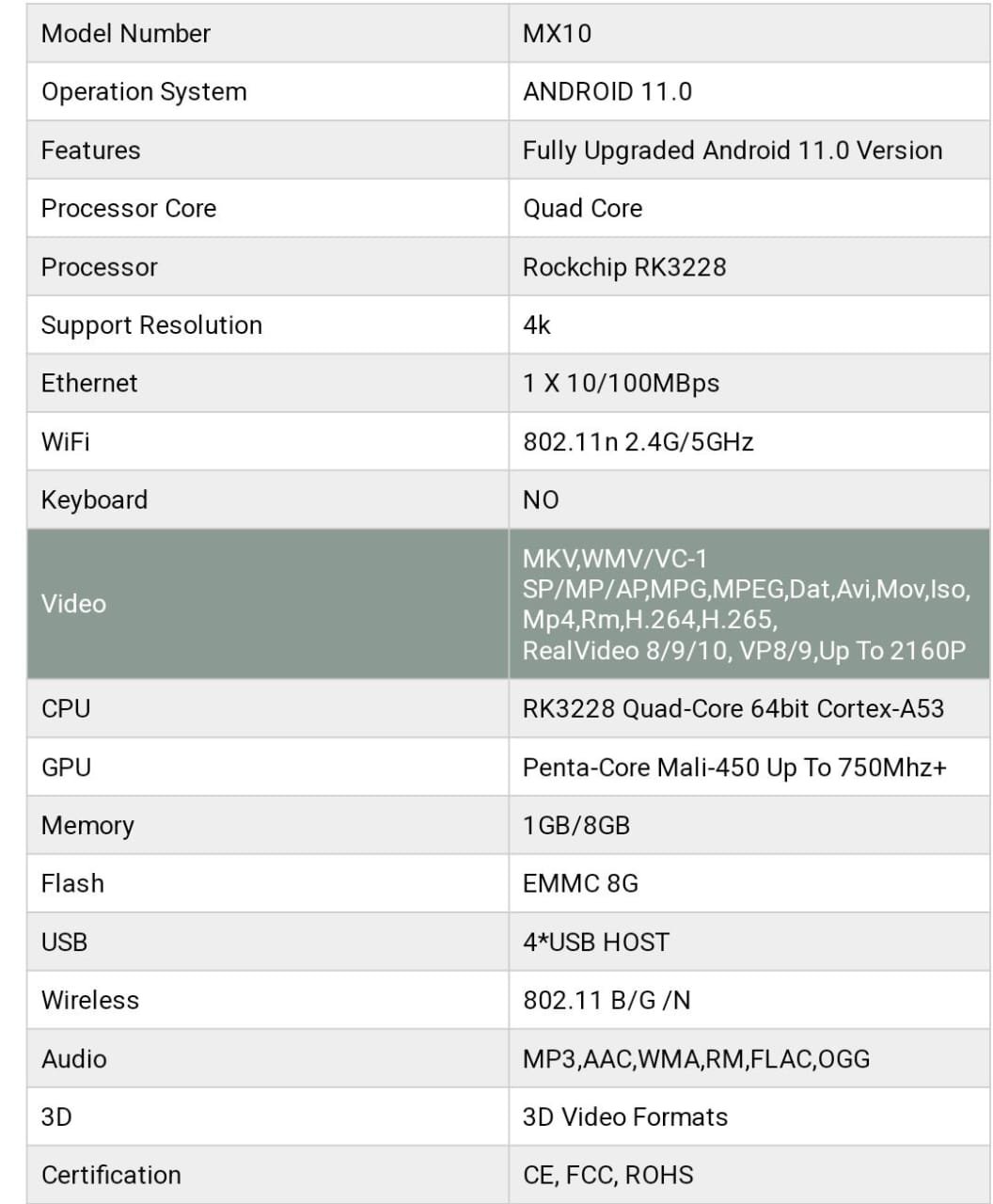 This device seems to be designed for streaming and playing various media content on your TV, including 4K video. It comes with built-in Wi-Fi, and USB ports for external devices, and supports various audio and video formats. The Android 11.0 operating system provides access to a wide range of apps and services, making it a versatile entertainment device. Please note that it does not include a keyboard.