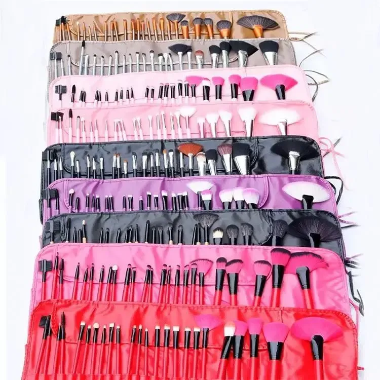 24PCs Makeup Brush Set Powder Foundation Large Eye Shadow Angled Brow Make-up Brushes Kit With a Bag Women Beauty Cosmetic Tool (Random Color)