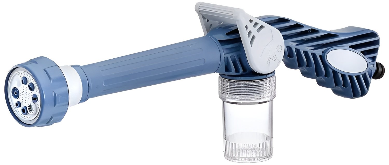 - The spray gun has a built-in liquid dispenser and can be used with soap, plant food etc.