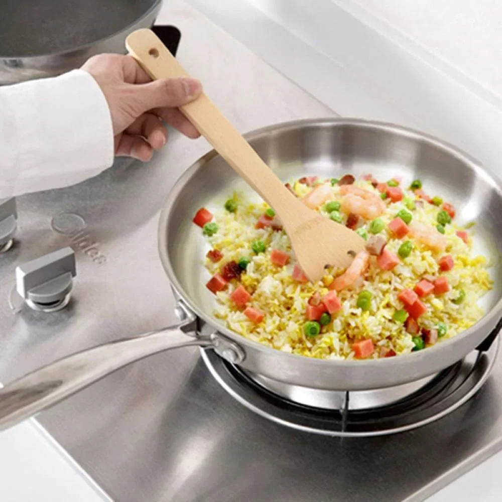 Pack of 4 ? Wooden Spoon Set | Nonstick Teak Wood Kitchen Utensils for Cooking & ServingDescription:Crafted from premium natural teak wood, this 4-piece Wooden Spoon Set brings durability, comfort, and timeless charm to your kitchen. Each utensil is carefully polished for a smooth, splinter-free finish that is gentle on hands and safe for all cookware?especially nonstick surfaces.Whether you?re saut?ing, serving, or stirring, this lightweight and easy-to-use set offers the essential tools needed for everyday cooking. With its rich wood texture and long-lasting quality, it also makes a thoughtful and practical gift for home chefs and food lovers alike.Details:Material: 100% Natural Teak WoodSet Includes:1 x Flatten Spatula1 x Slotted Spoon (Doi)1 x Sipi Spoon1 x Slotted SpatulaDimensions: Approx. 35 cm (L) x 6 cm (W) per pieceFinish: Smooth, polished surface for comfortable gripUse Case: Ideal for stirring, flipping, serving, and saut?ingCompatibility: Safe for nonstick cookwareTexture: Plain wooden grain finish with elegant appearanceMaintenance: Hand wash recommended; avoid soaking or dishwasher useGiftable: Great for housewarming, newlyweds, or cooking enthusiastsProduct Pictures: Product Original Picture
