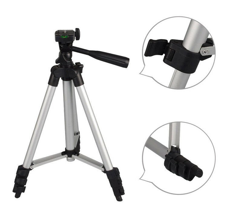 Pack Of 03 3.5 Feet Adjustable Tripod Stand for Mobile Phones and Cameras with Mobile Holder, Portable DSLR Stand for Vlogging, Universal Silver Model 3110 and Bag