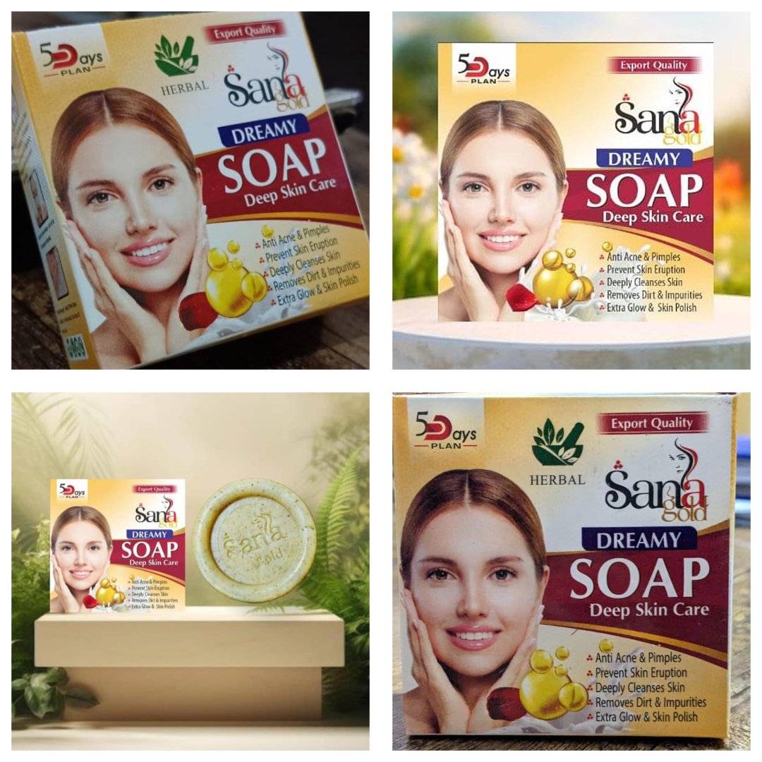 Pack of 07 – Sana Gold Magic Soap is your go-to solution for glowing, refreshed, and healthy skin. Made in Pakistan with a powerful herbal formula, this soap is designed to cleanse deeply, brighten your complexion, and help reduce skin issues like acne, dark spots, and uneven tone. Each box contains 7 high-quality soap bars, ensuring long-lasting use and consistent results. Trusted by many for its visible improvements and guaranteed performance, it?s perfect for daily skincare.