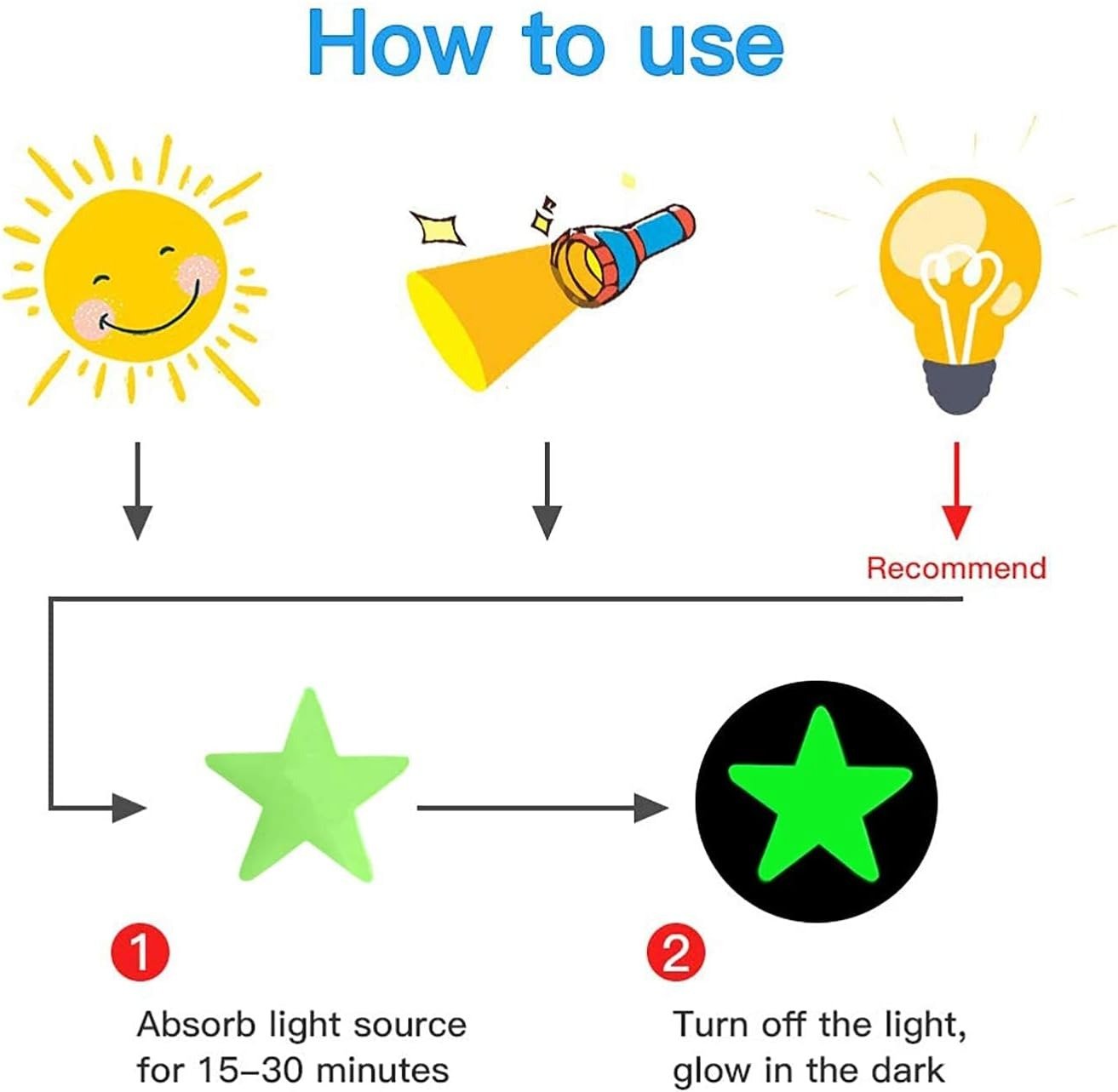 Pack of 100 ? 3D Glowing Stars for Ceiling and Wall Decoration ? Luminous Night Sky Stickers for Kids? Rooms, Bedrooms, and Nurseries ? Glow-in-the-Dark Wall Decals with Adhesive