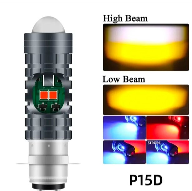 Light up your ride with this Pack of 2 Universal Bulbs?featuring a Yellow/White beam headlight and a Red/Blue flashing backlight. Designed for visibility, style, and road safety, this combo is a must-have upgrade for any bike enthusiast.