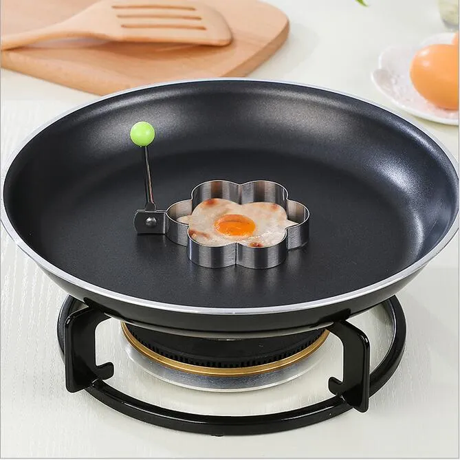 4 SHAPES ALL IN ONE: 4 Shapes: Heart + Flower + Star + Round lovely shape fried egg mold. Easy to clean and enduring performance.