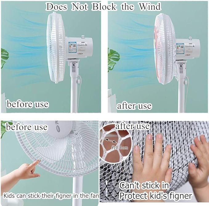 Electric fan mesh safety cover: The Compatible with hole size and net fashion style keep safe while let fresh wind. Do not worry about kids accidently put the finger in fan. Protect your children from fan with this super soft and comfortable protective cover.