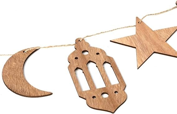 Ramadan Kareem Decorations chain Wooden material (10pec)