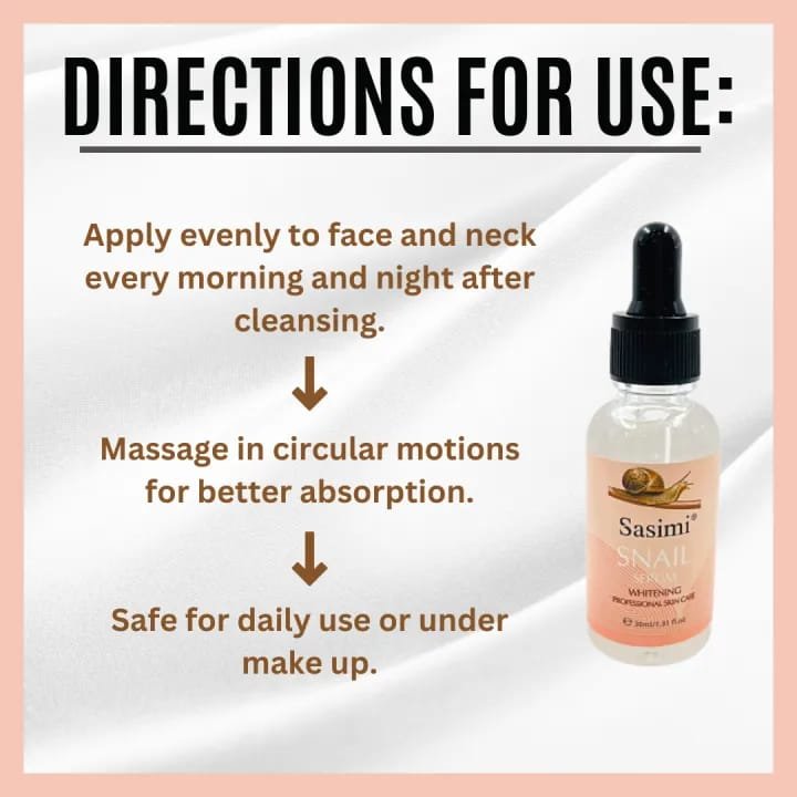 SASIMI SNAIL SERUM is light and highly effective. It will help fade sun spots & discoloration, refine skin texture, and reduce wrinkle formation.