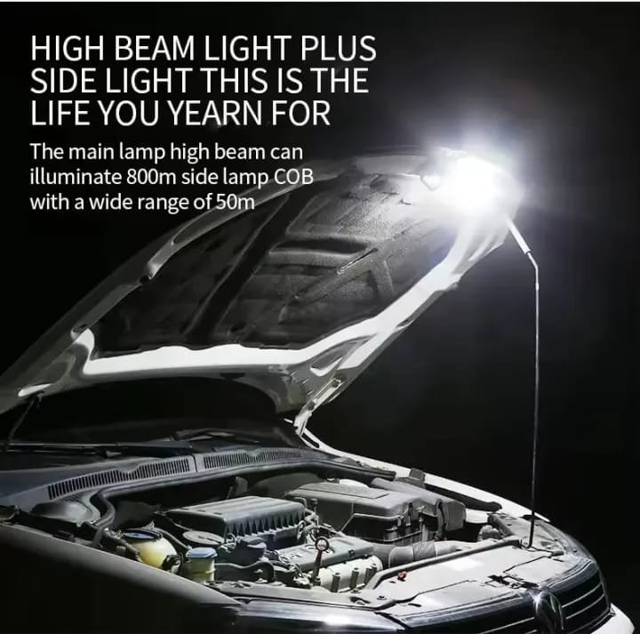 Dual Light Mode ? Front LED beam and side COB light for versatile use.