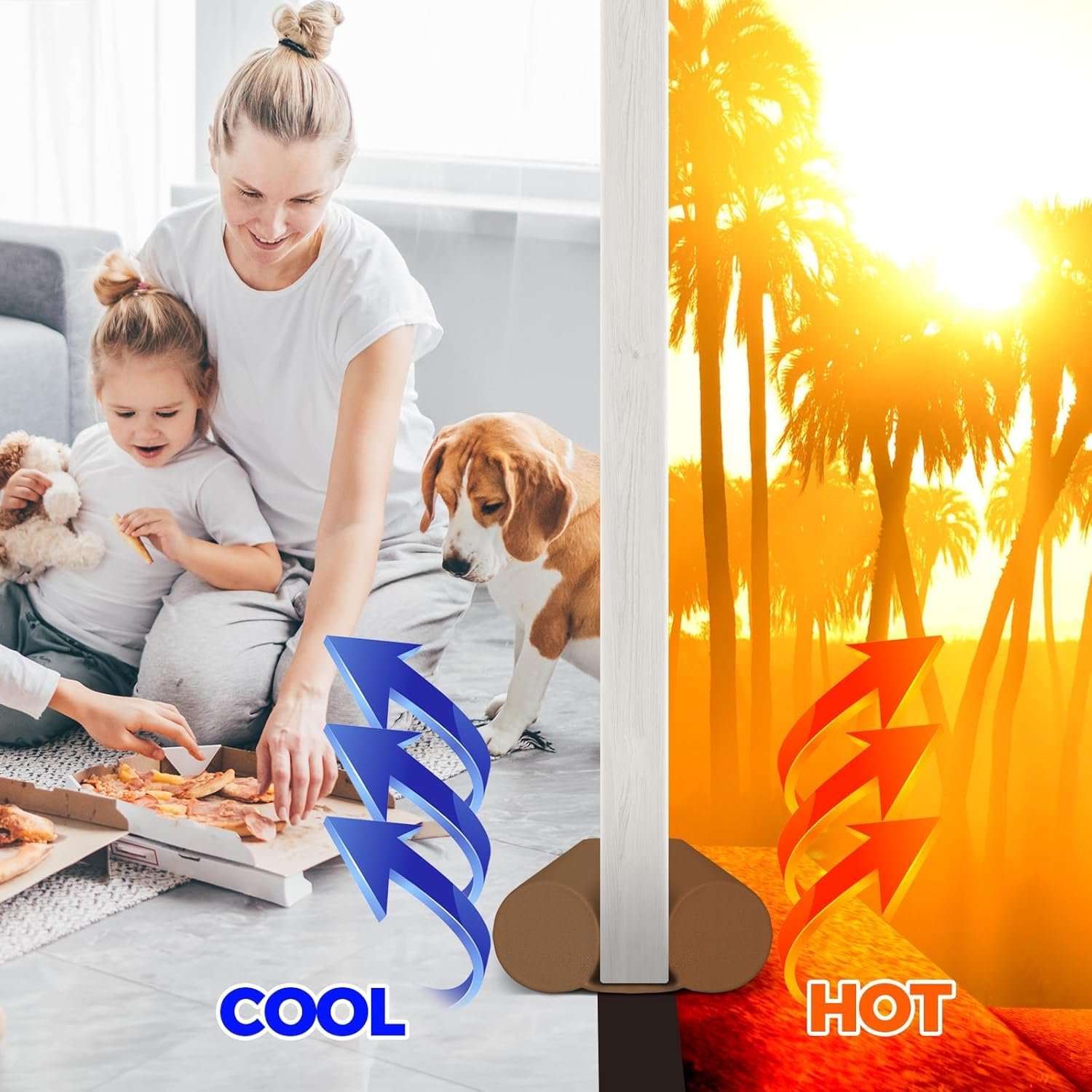 Product DescriptionEasy to install: adjustable size for most homes; Please measure the gap and width of the door before purchasing and keep the door clean to ensure our draft stopper works as intendedLarge size sponge is not ordinary slender sponge, which will not move with the opening of the doorHook and loop fastener design, keeps foam tubes safely inside even with constant opening and closing of doorsBlock light and windshield, it can block the cold/hot wind/smoke outside, making the indoor more comfortableCan be recycled without damaging the door, detachable bag, can be repeatedly washed and used, can be machine washed; Please keep low temperature when drying Product Original Video