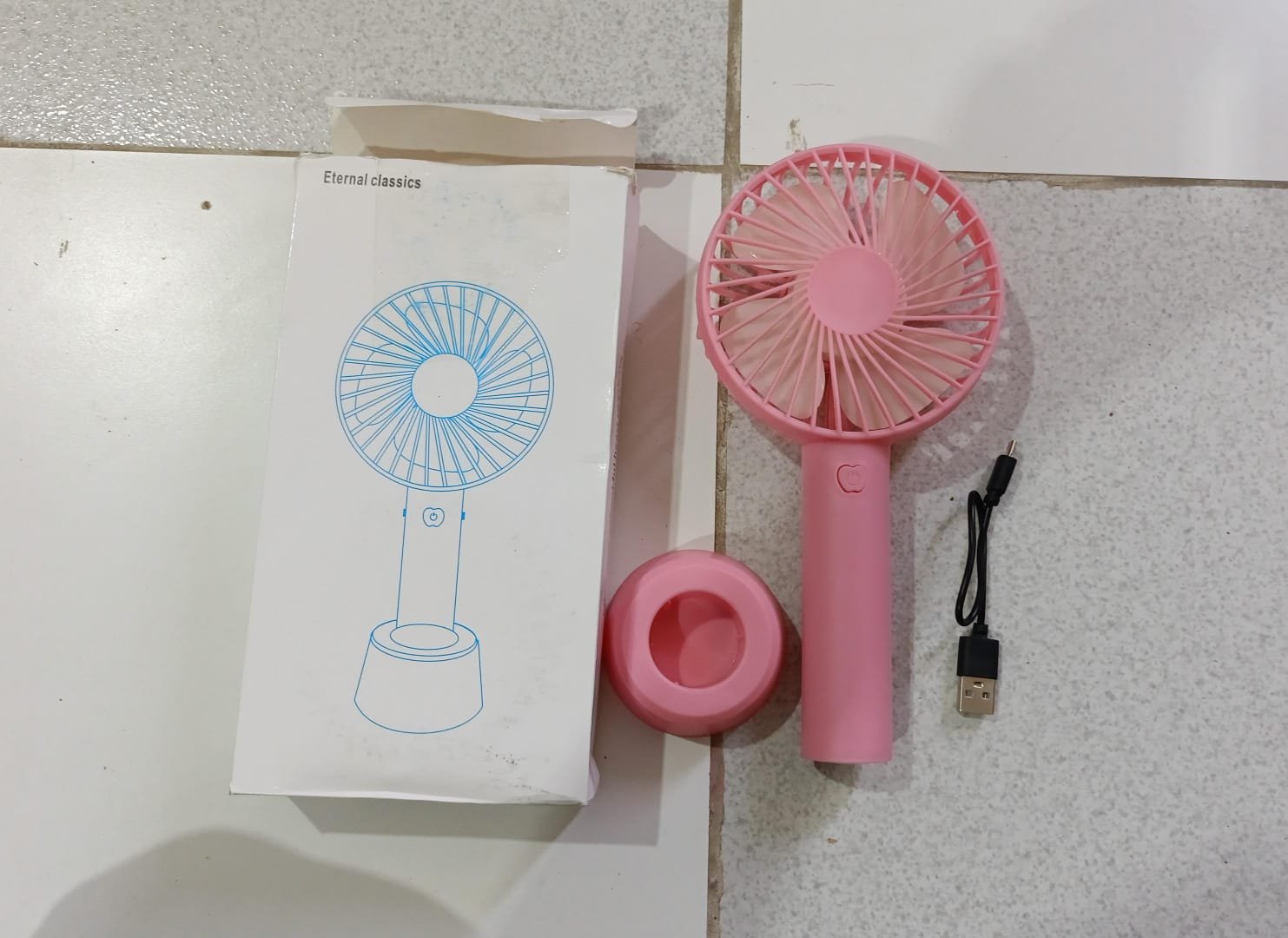 1500mAh battery, there are different ways to charge the fan: charging cable to the desktop/notebook, car charger, power bank, three-mode rechargeable fan