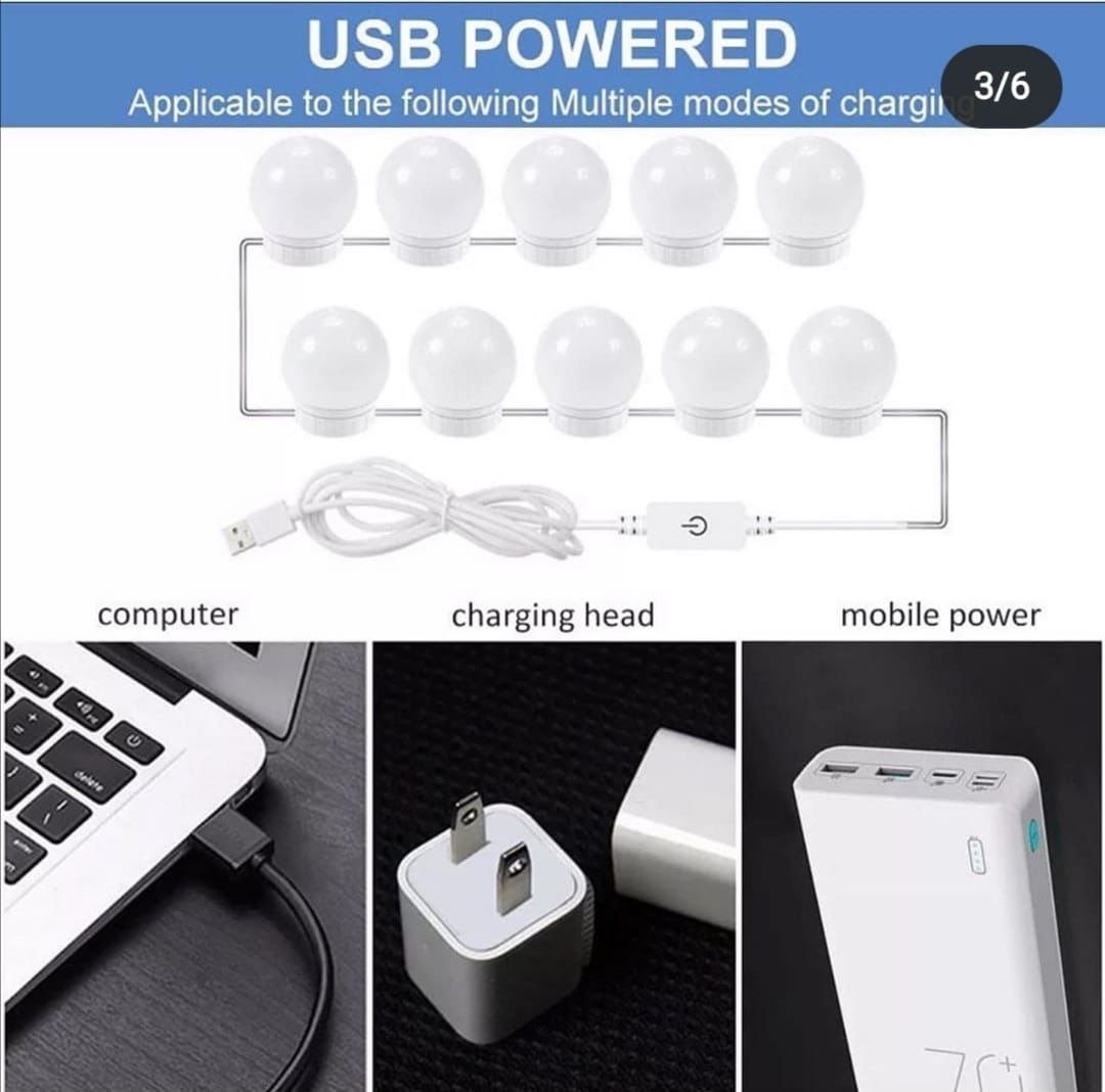 Product details of Vanity Light LED Bulbs for Makeup Mirror Stand 10 Bulbs with 3 Light Modes